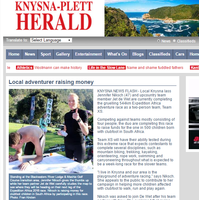 Fundraising for children with clubfoot featured in the Knysna-Plett Herald