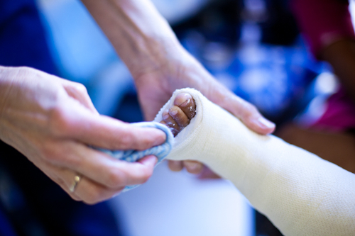 Plaster of Paris casts can be removed after soaking. You can either pre-soak at home, or in a basin at the clinic. Sometimes you will remove the cast at home. This will depend on what facilities the clinic has available,